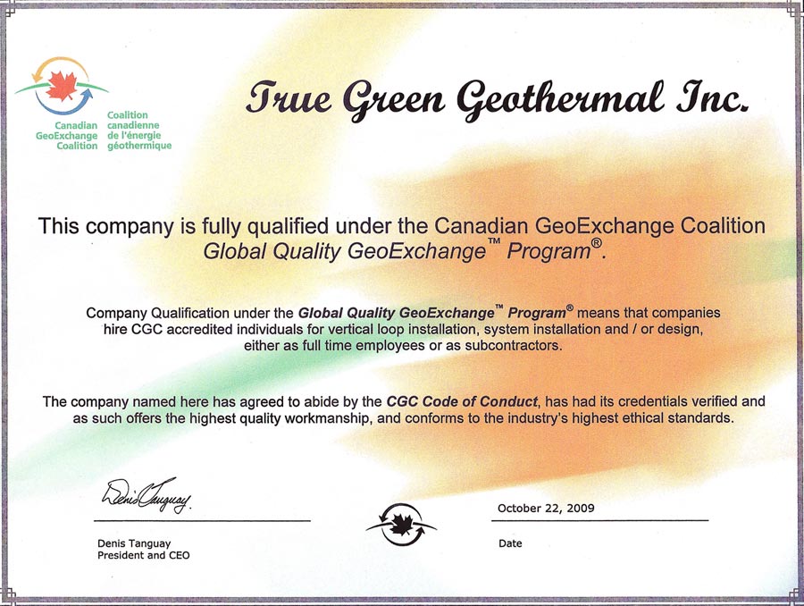 True Green Geothermal is an authorized dealer of GeoSmart Energy products. Learn more about how geothermal works here.